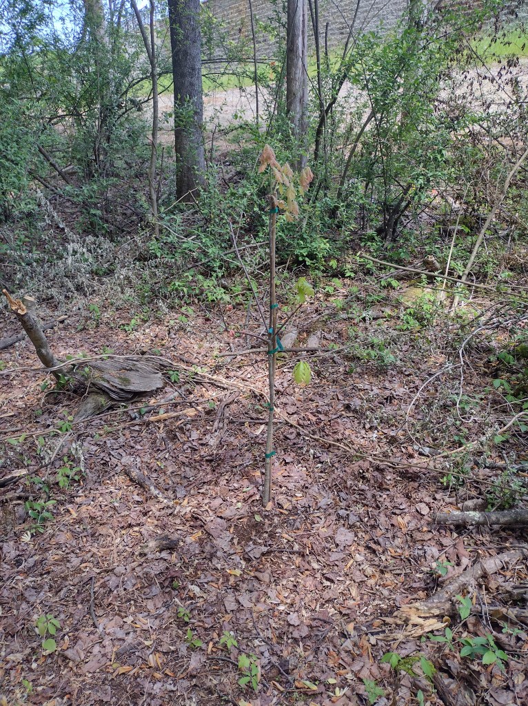 In the interest of full disclosure, I did this a couple of weekends ago. (Hey, Earth Day can be any day, really.) I’ve biked past the tree several times to monitor it, offer some water, and monitor for new growth of Autumn olive and privet, which was also present. So far, so good.
