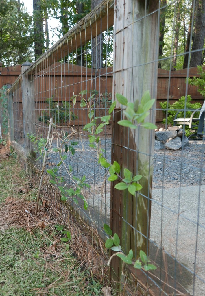 A host plant for the clearwing is our native coral honeysuckle (Lonicera sempervirens). This plant produces red, trumpet-shaped flowers favored by the clearwing, as well as by hummingbirds and many butterflies. This season is the first time I’ve tried planting a vine, and I decided to try training it to grow on a fence that divides our backyard. The vine is small now, but this plant can grow to 15 feet or more. It’s supposed to be low maintenance, too, which I call a win.