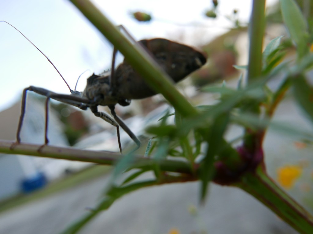 I was making the wheel bug nervous. It’s trying (not very successfully) to hide from me.
